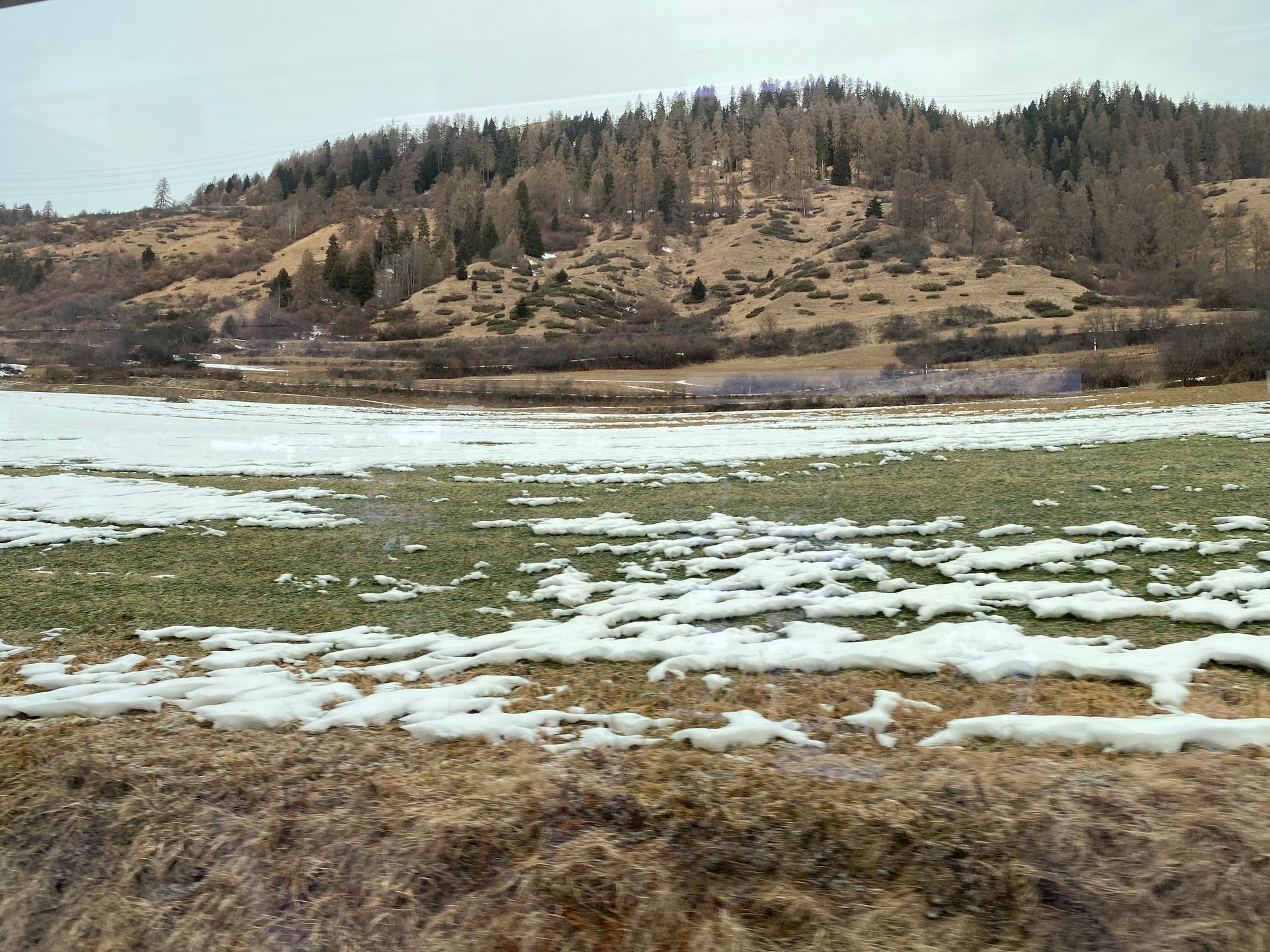 Skilager in Scuol 2026 (oben gute Pisten, Talabfahrt auf Schneestreifen ins Grüne)